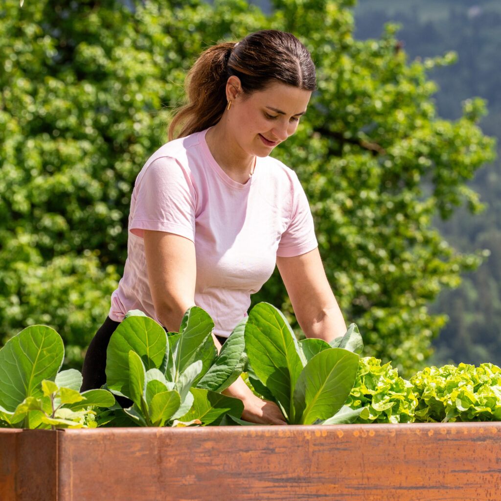 Das Stahl Hochbeet von Terre Suisse im rustikalen “Stahl-Look welches mit der Zeit verrostet”.