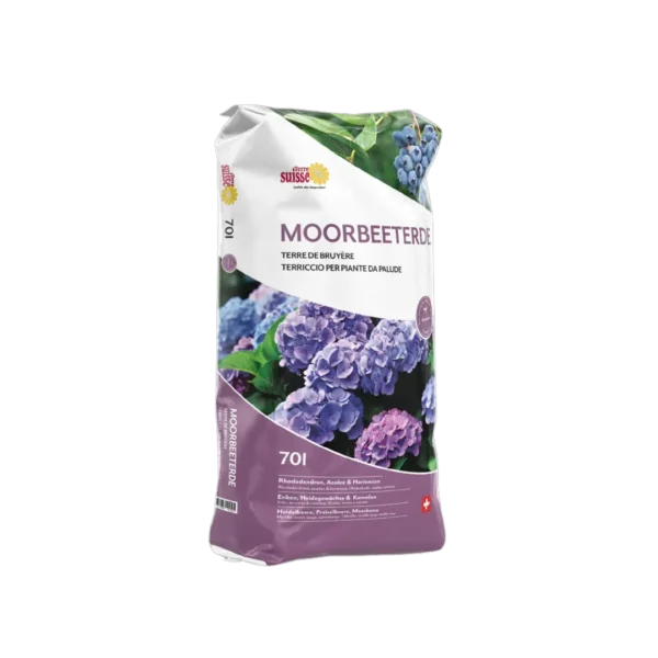 Terre Suisse Moorbeeterde eignet sich hervorragend für Moor- und Heidegärten sowie für Rabatten, Beete und Kübelpflanzungen mit säureliebenden Pflanzen wie z.B. Rhododendron, Azalee, Heidekraut, Himbeeren, Heidelbeeren. Sie kann auch zur Verbesserung bestehender saurer Böden verwendet werden.